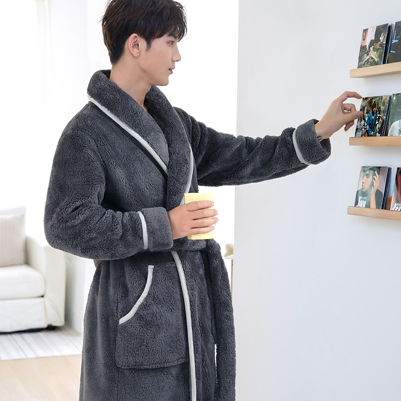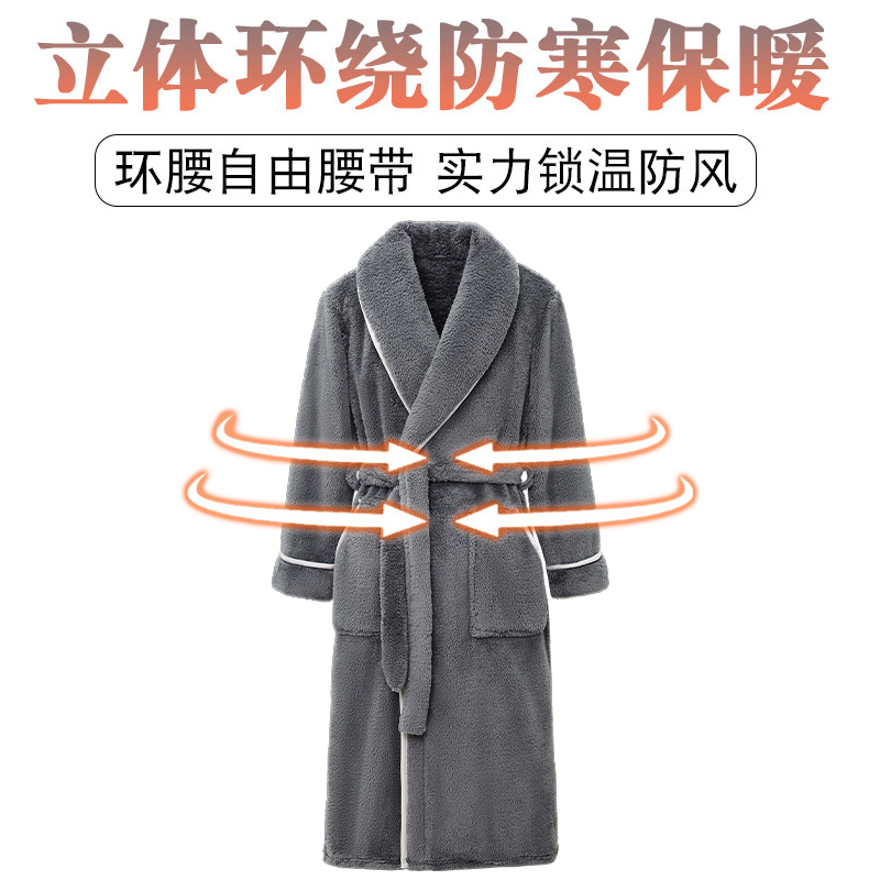 珊瑚绒加厚加绒法兰绒浴袍保暖家居服长款 冬季 睡袍秋冬款 睡衣男士