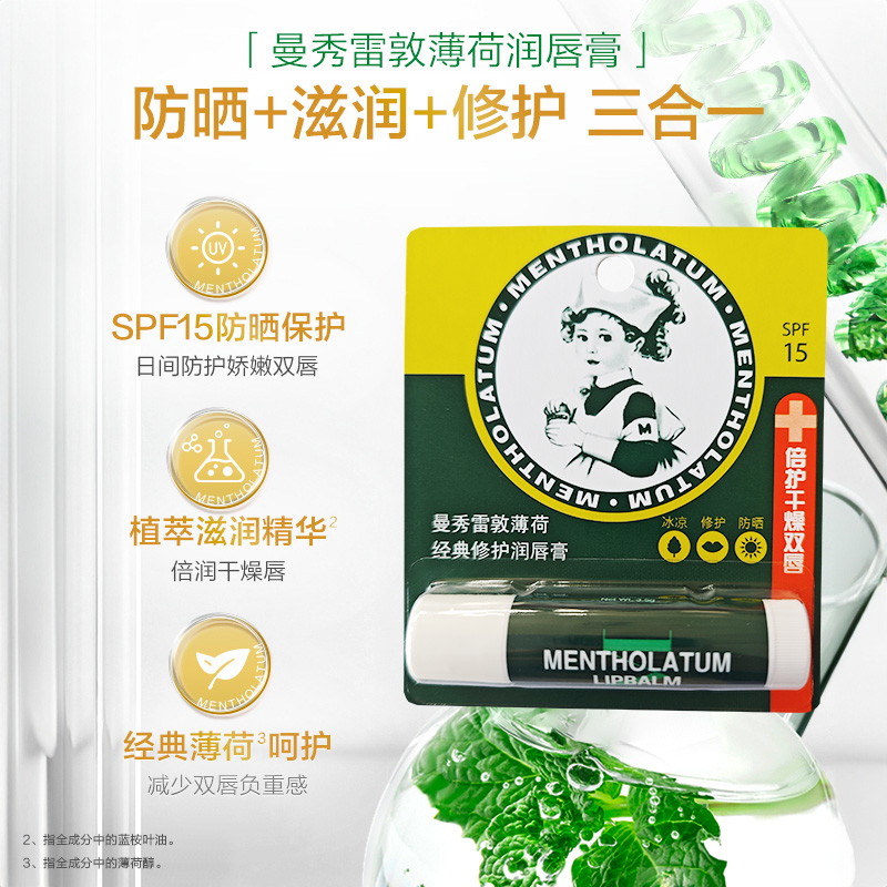 补水淡纹去死皮2件唇膜防干裂 曼秀雷敦薄荷滋润唇膏保湿 自营