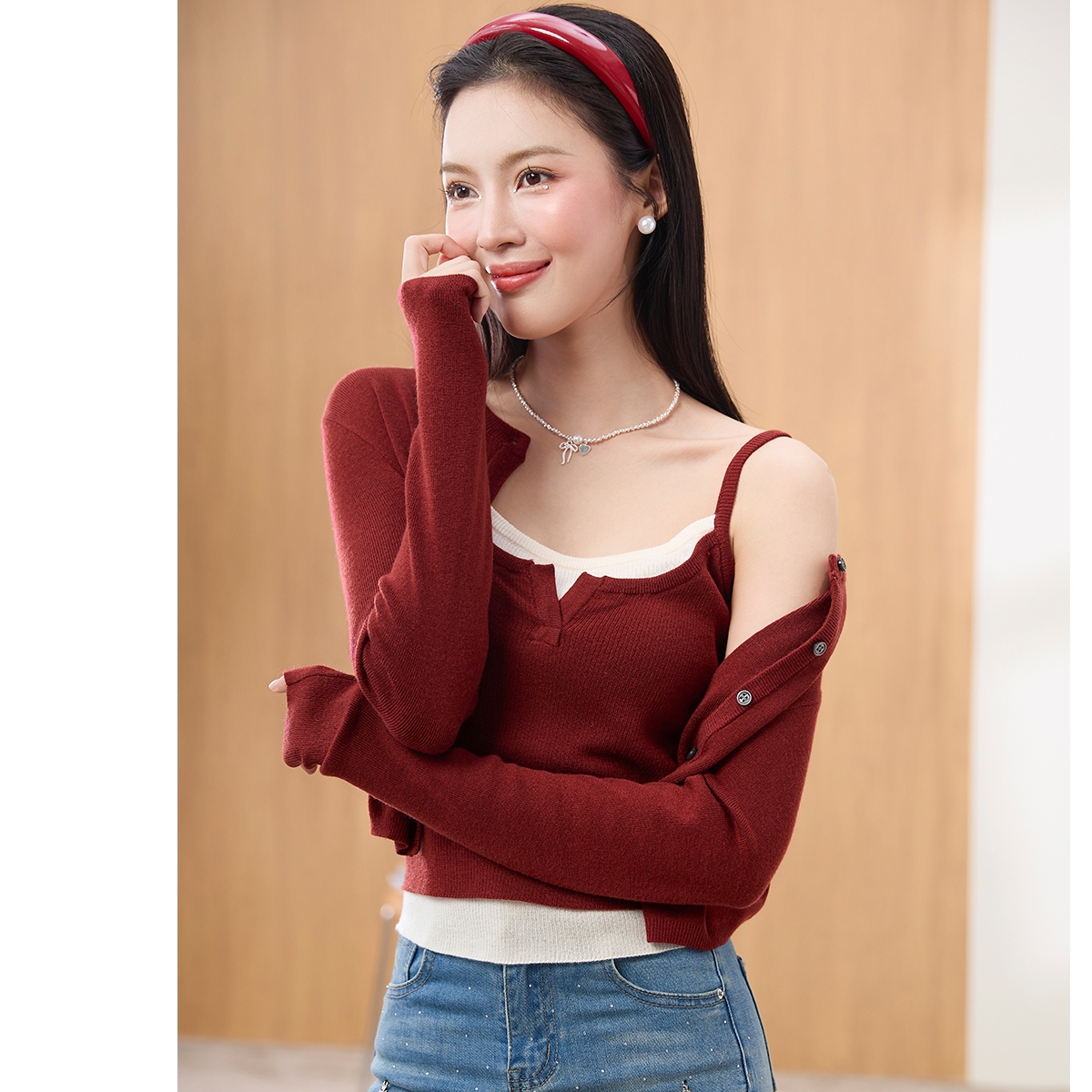 入秋搭配一整套针织衫 毛衣气质穿搭两件套 吊带背心2025春秋新款