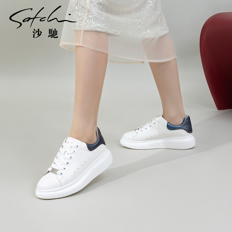 厚底小白鞋 撞色运动休闲鞋 女25年春夏新透气款 时尚 面包鞋 沙驰女鞋