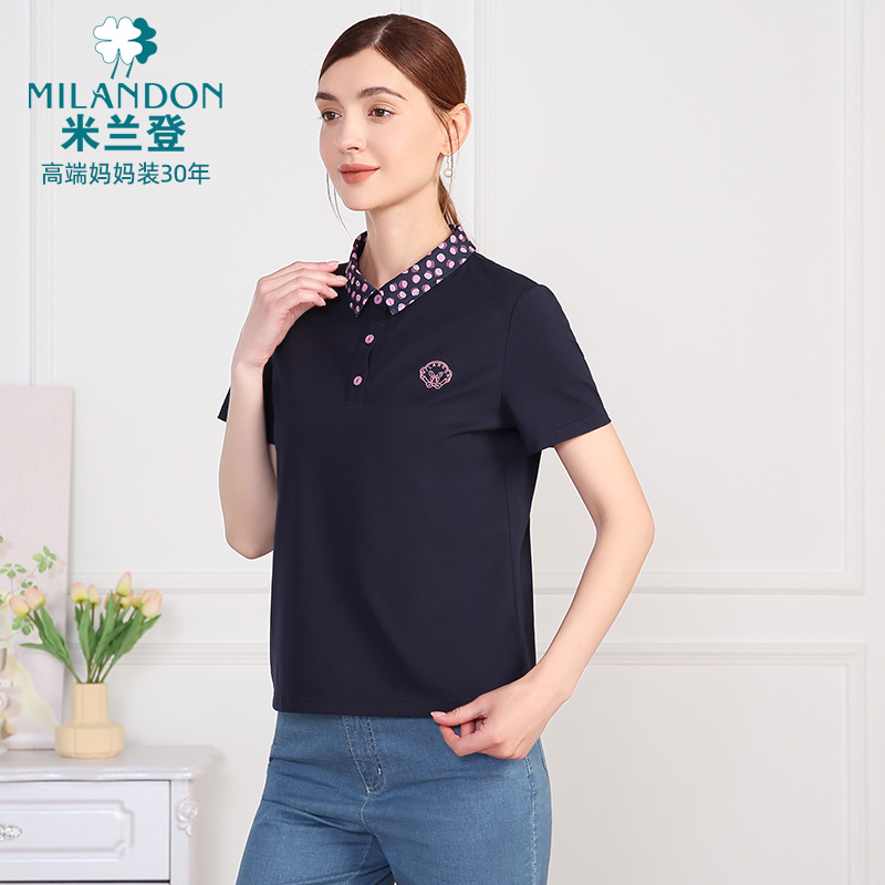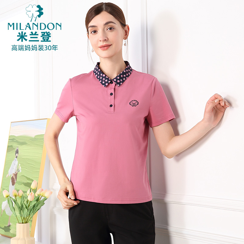 2025年夏季 女短袖 新款 印花POLO领T恤衫 薄 时尚 米兰登中老年妈妈装