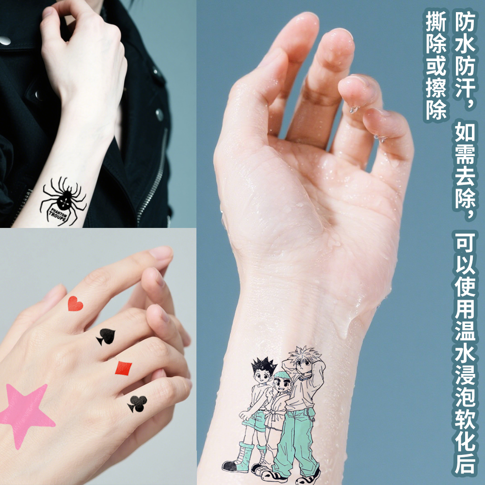 漫能全职猎人彩色卡通纹身贴个性 防水贴纸动漫周边ins diy日系风格