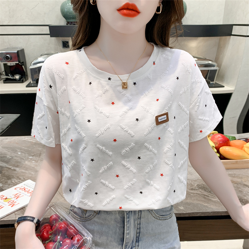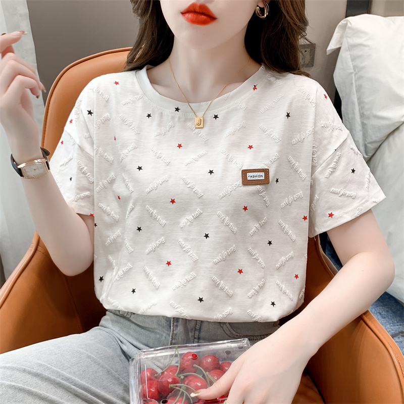 纯棉印花短袖 宽松半袖 t恤女2025夏季 韩版 体恤圆领上衣服 新款 时尚