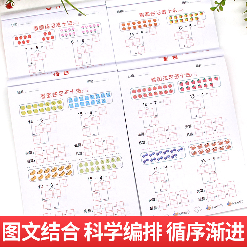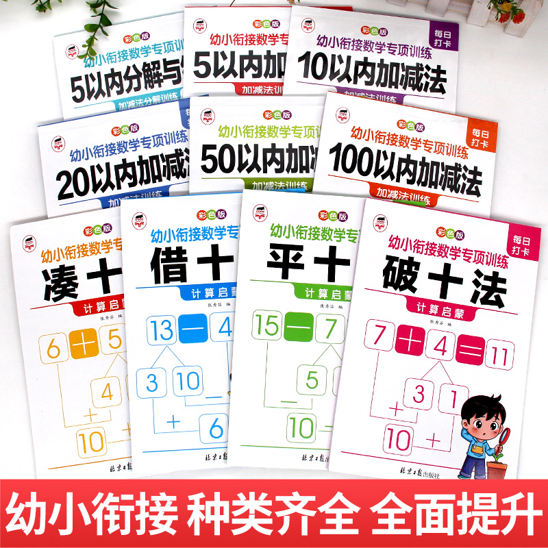 100以内加减法凑十借十平十破十法分解与组成天天练习册幼儿园中大班学前班口算题卡 幼小衔接数学专项训练全套每日一练5