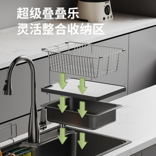 日式 水槽大单槽304不锈钢厨房洗菜盆家用收纳洗碗槽洗菜池台下盆