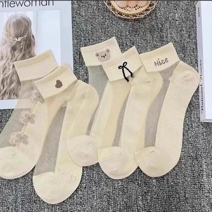 防滑短筒玻璃丝中筒水晶超薄 透气肤色新款 袜子女棉底短袜夏季 薄款