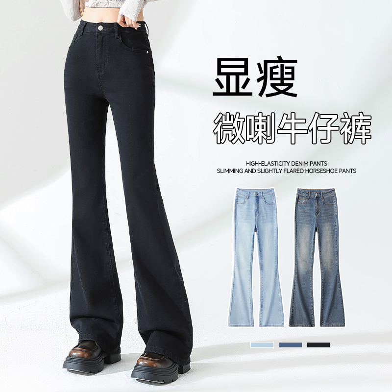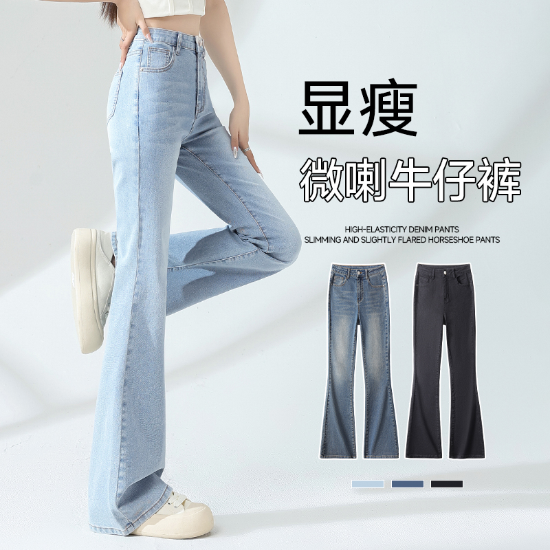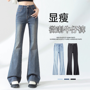 喇叭裤 辣妹弹力修身 子 女2025夏季 KWV真维斯女士高腰微喇牛仔裤