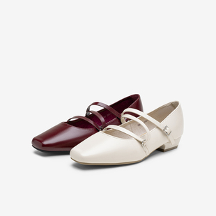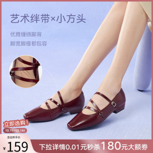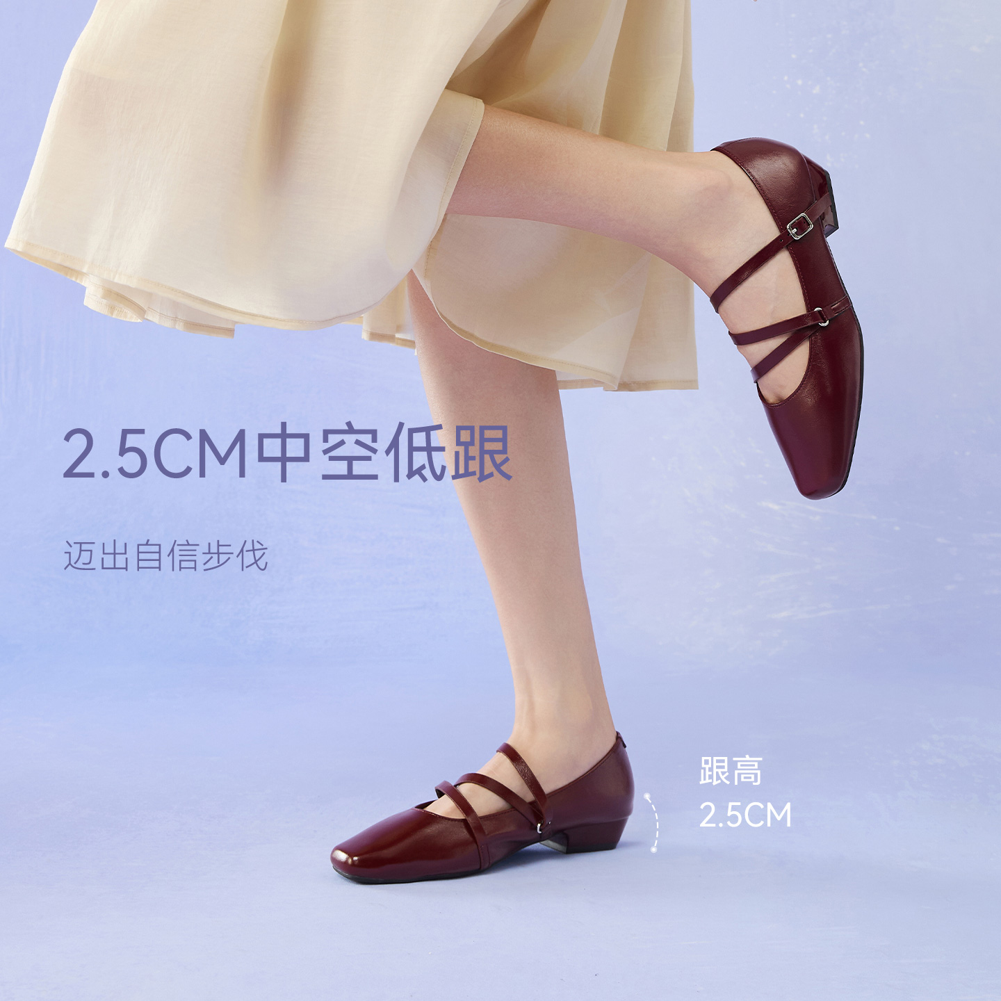 羊皮玛丽珍浅口女红色单鞋 百思图莫奈花园25秋新款 叶一茜同款