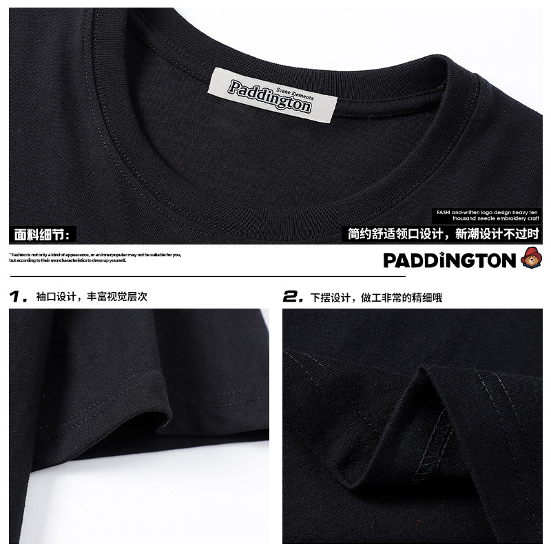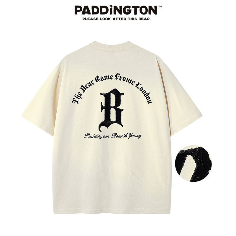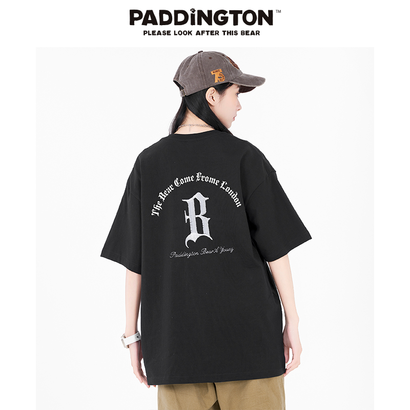 帕丁顿熊美式 男宽松T恤女落肩情侣 复古高街哥特字母刺绣重磅短袖