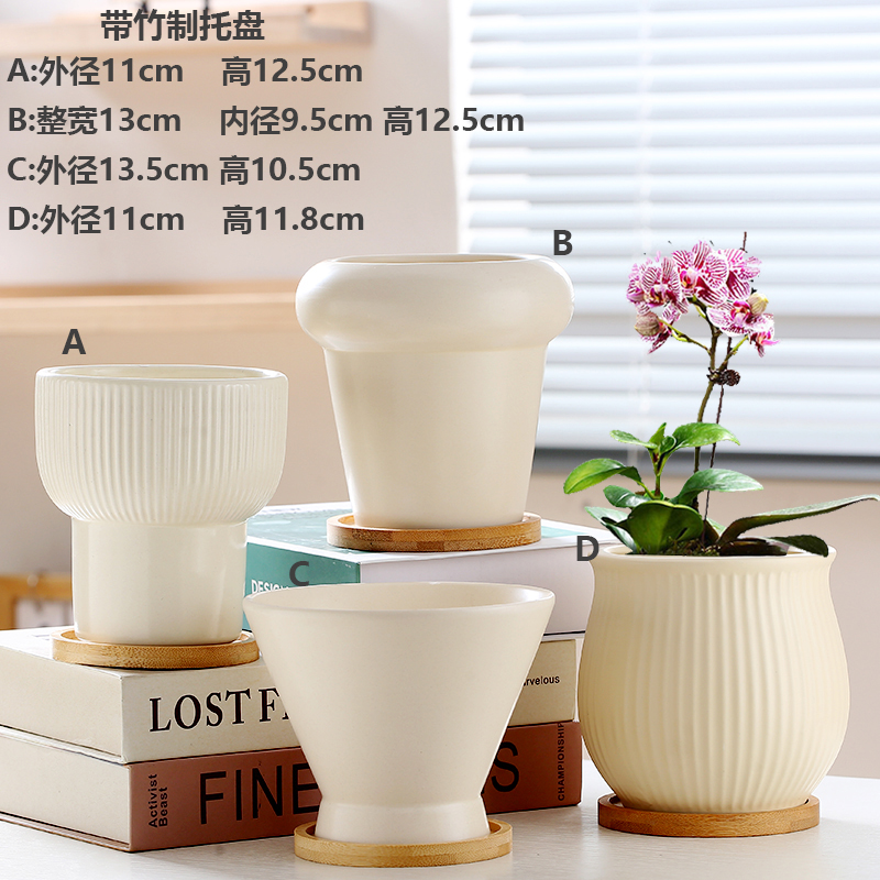 花盆陶瓷带托盘轻奢ins风蝴蝶兰清仓捡漏大口径奶油风多肉小花盆