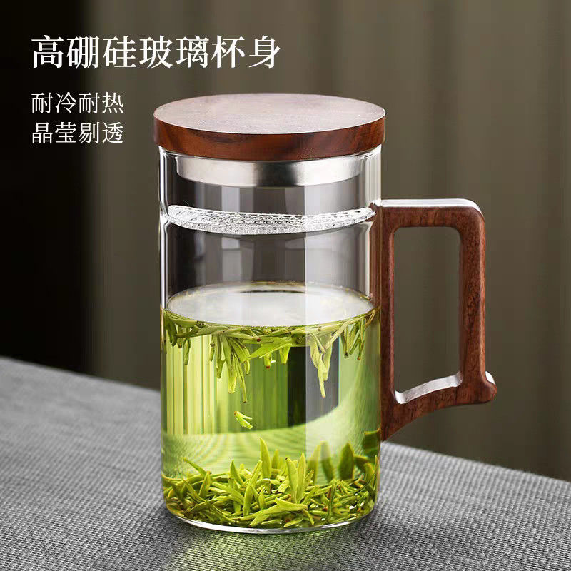 高档玻璃杯男士 茶水分离泡茶个人专用耐热防摔大容量双层隔热水杯