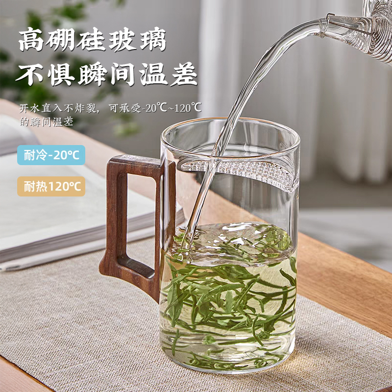 显温双层玻璃杯带把手大容量办公泡茶家用水杯男女带手柄隔热防烫