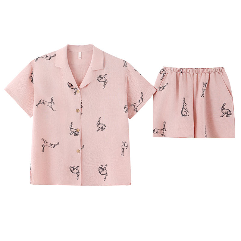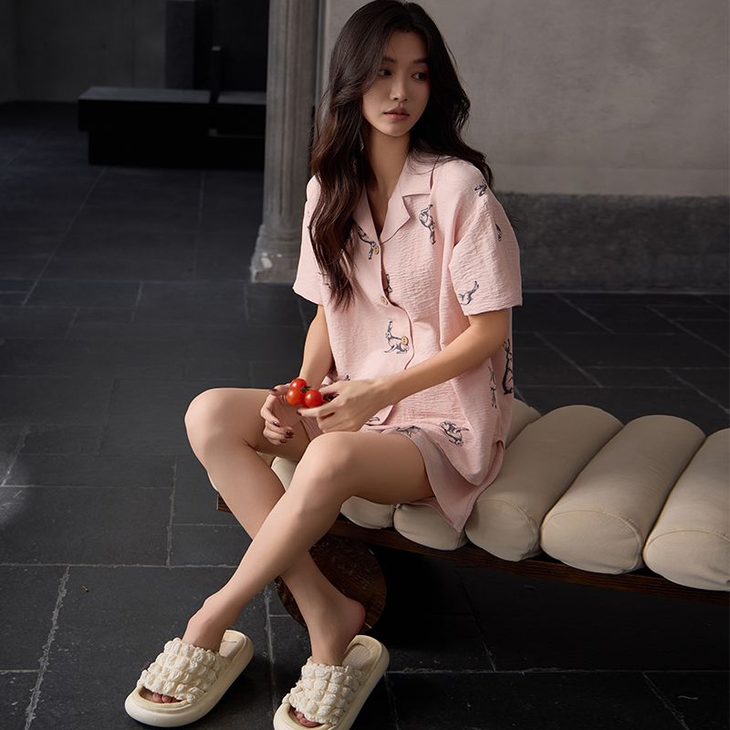 休闲女士家居服粉色 二件套春夏云朵棉带胸垫睡衣2025新款 短袖 短裤