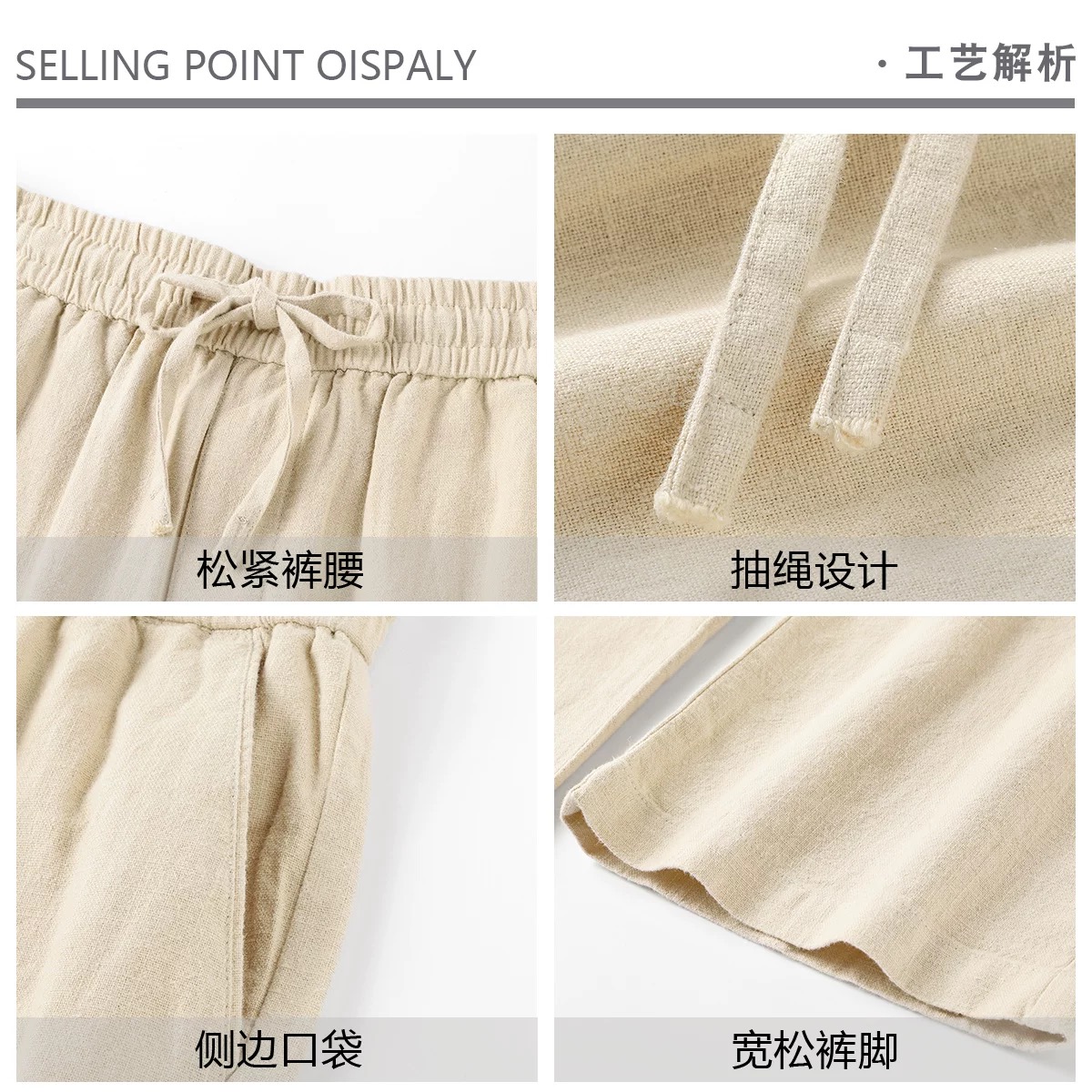 宽松裤 休闲裤 子大码 直筒14支纯亚麻舒适薄款 100%亚麻夏季 长裤 男士