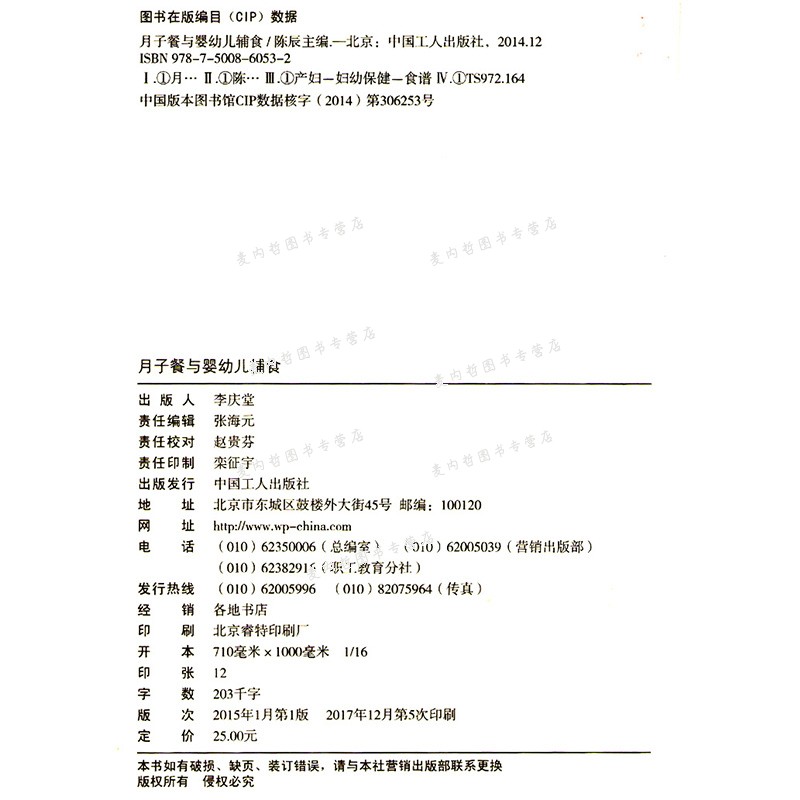 现货 月子餐与婴幼儿辅食 社正版 中国工人出版 陈辰