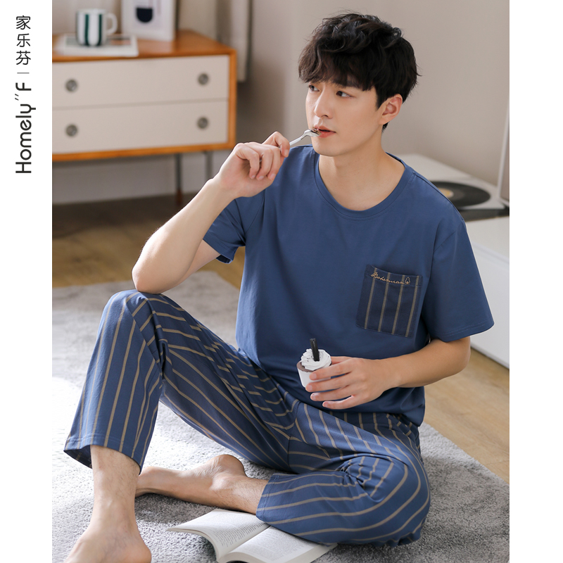 长裤 纯棉短袖 家居服男款 夏天薄款 家乐芬睡衣男士 套装 夏季