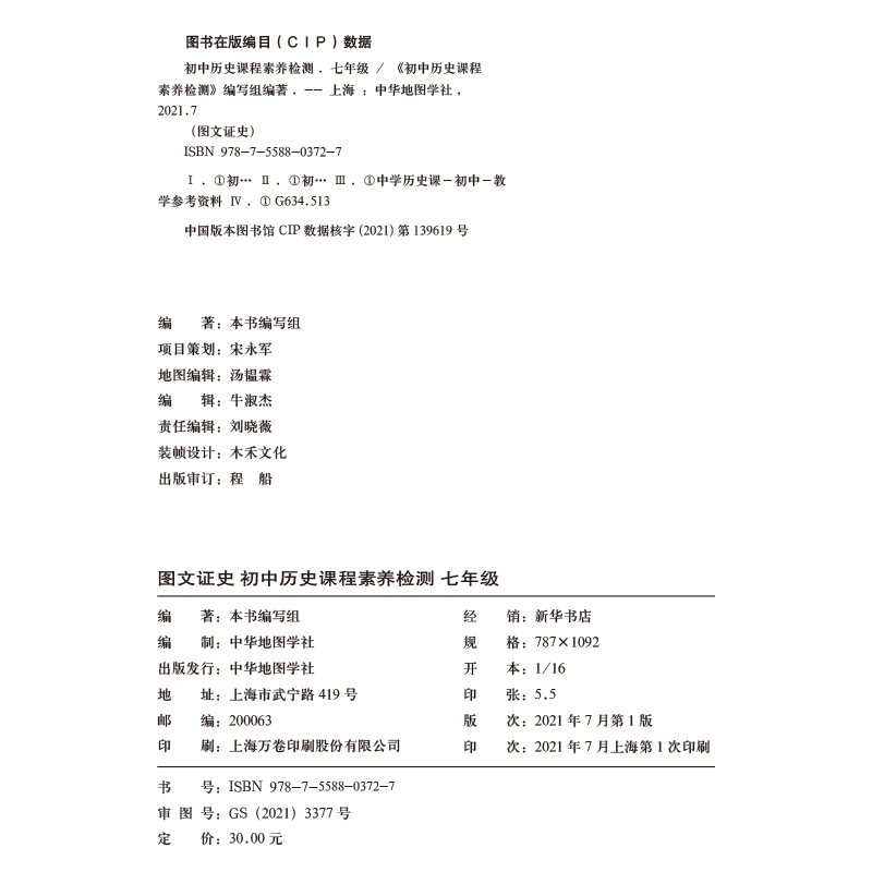 初中历史课程素养检测 全国通用 七年级适用 中国历史 中华地图学社 初中历史教辅复习工具书图文知识大全 图文证史