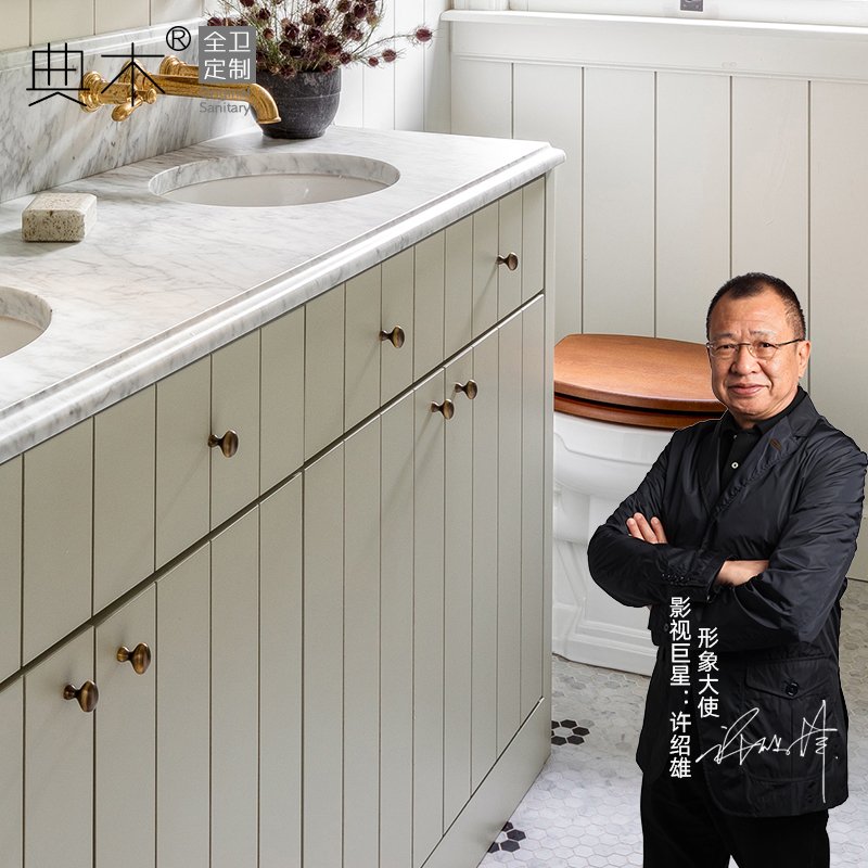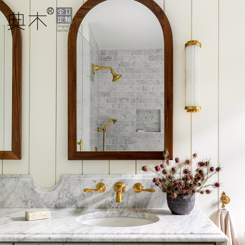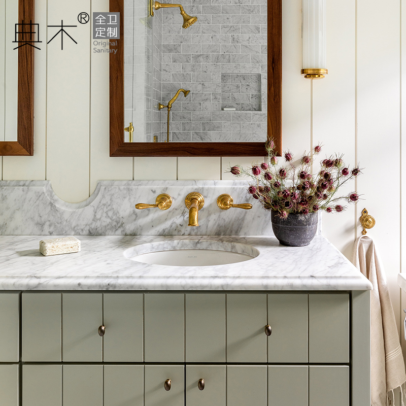 地中海风格 复古浴室柜岩板一体盆实木网红岩板简美北欧洗手盆定制