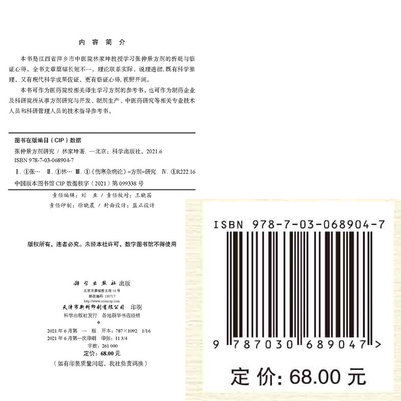 张仲景方剂研究 社 林家坤 科学出版 9787030689047 T中医书籍药学药理大量丰富实用案例 正版