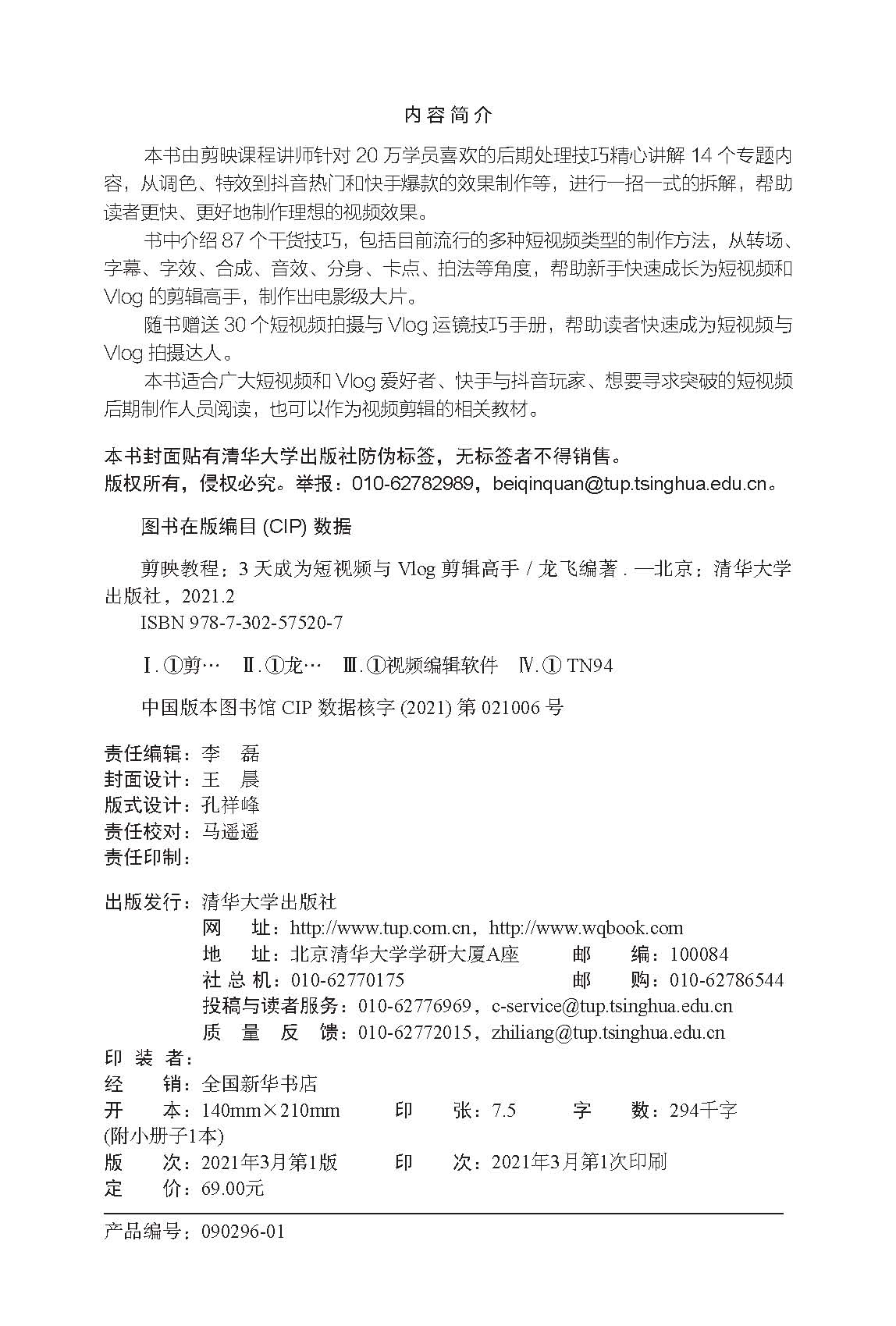 龙飞 3天成为短视频与Vlog剪辑gao手 清华大学出版 社 转场字幕字效合成音效分身卡点拍法书籍 现货 快手抖音短视频制作书 剪映教程