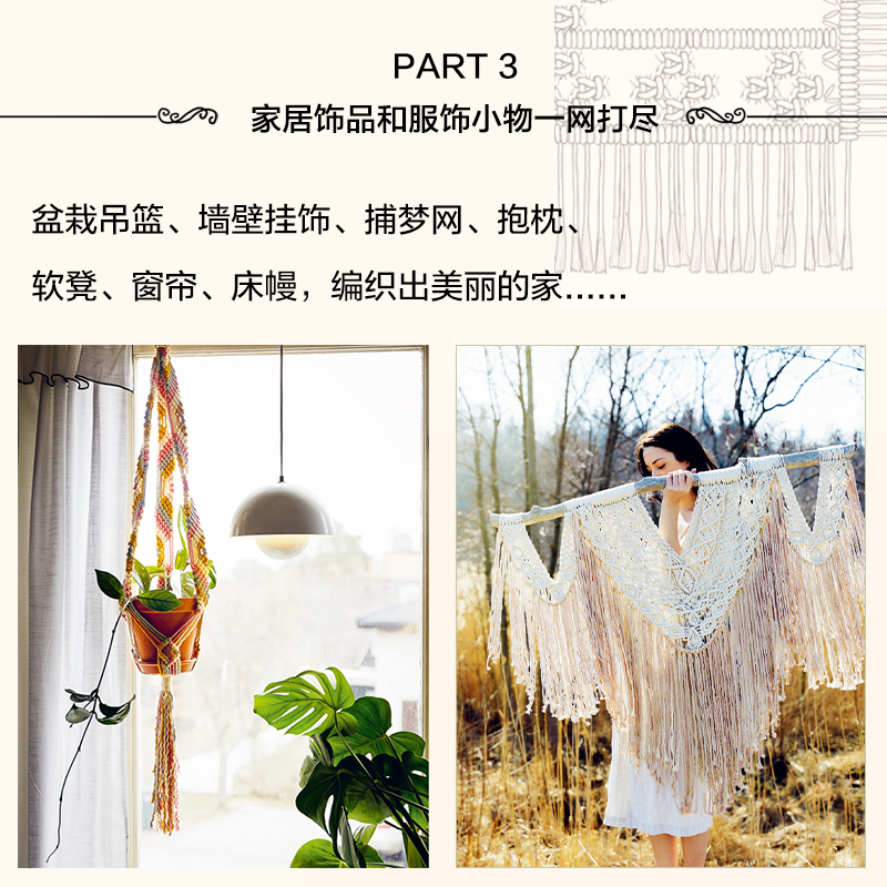 北欧风壁挂植物吊篮铺梦网波西米亚风腰带包包连衣裙绳编教程 正版 北欧风家居饰品和服饰小物 绳编2 绳编艺术技术书籍 匠心匠艺