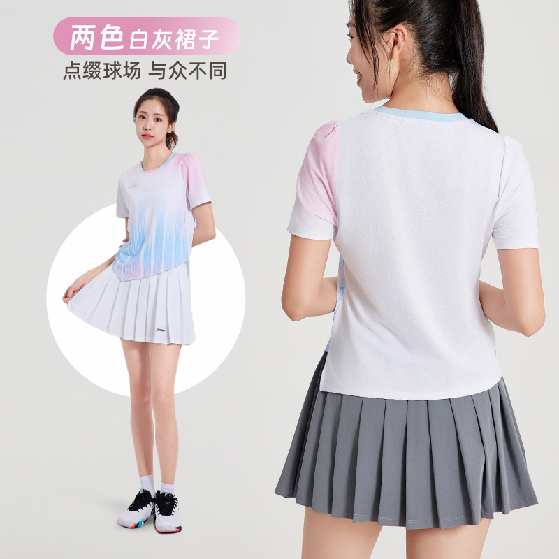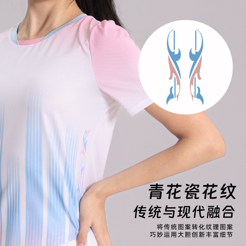 运动短裙大赛高颜值大码 女短袖 青花瓷秋冬羽毛球衣服套装 李宁新款
