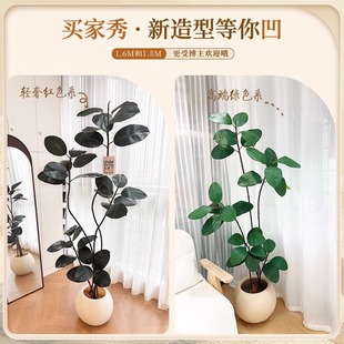 仿真绿色橡皮树黑金刚大型落地摆件高端轻奢客厅室内装 饰假绿植物