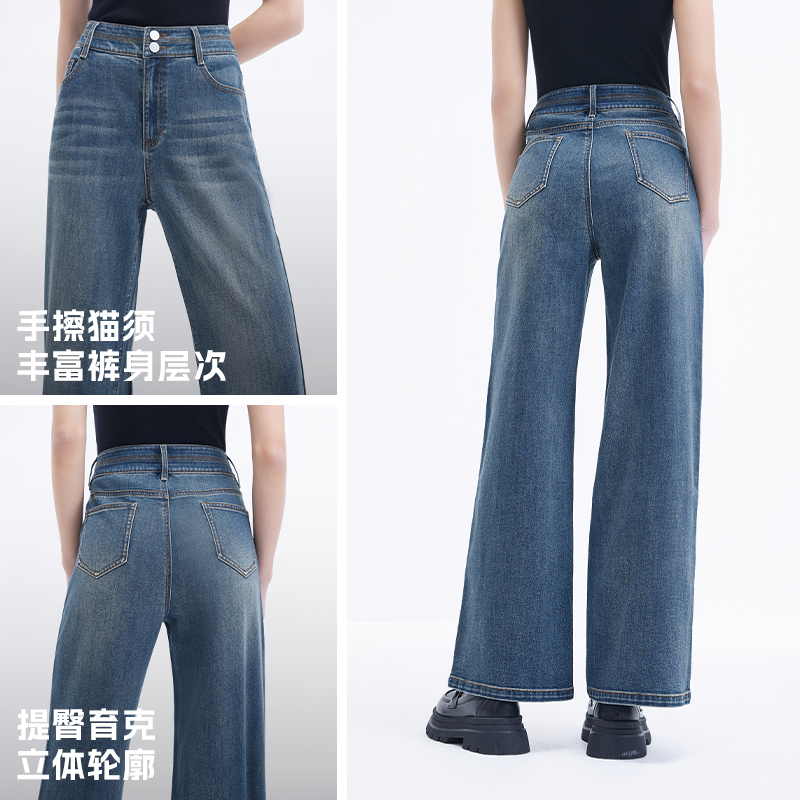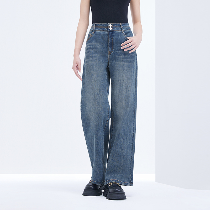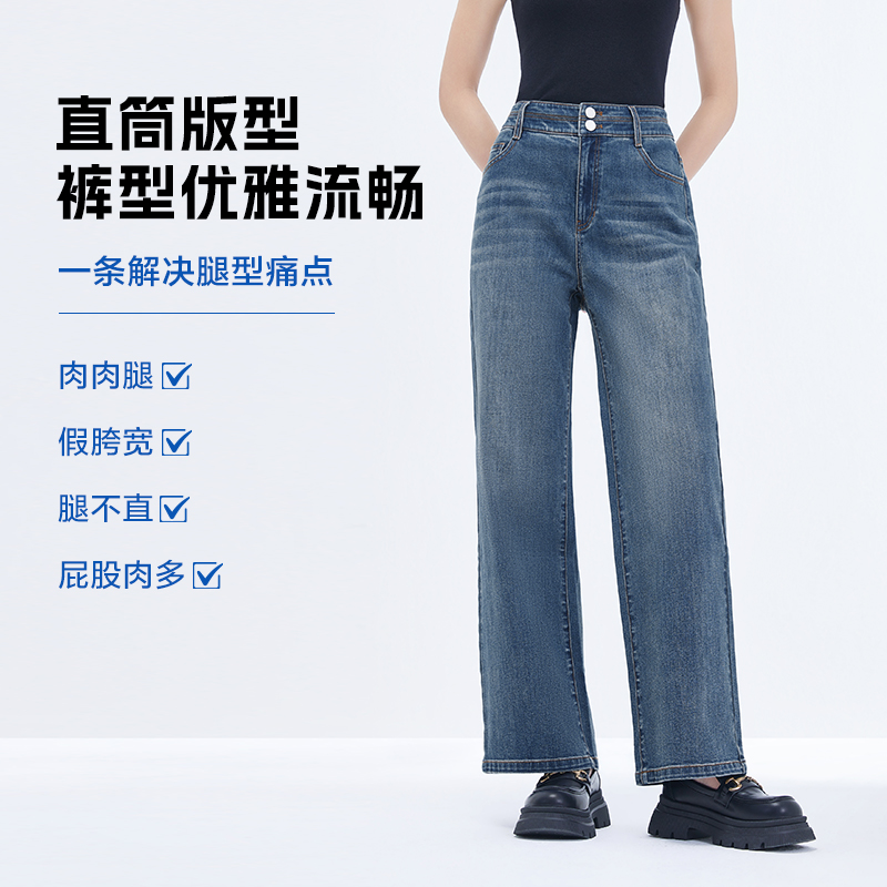 时髦双排扣显高显瘦直筒长裤 百斯盾女装 美式 2025年春夏新款 牛仔裤