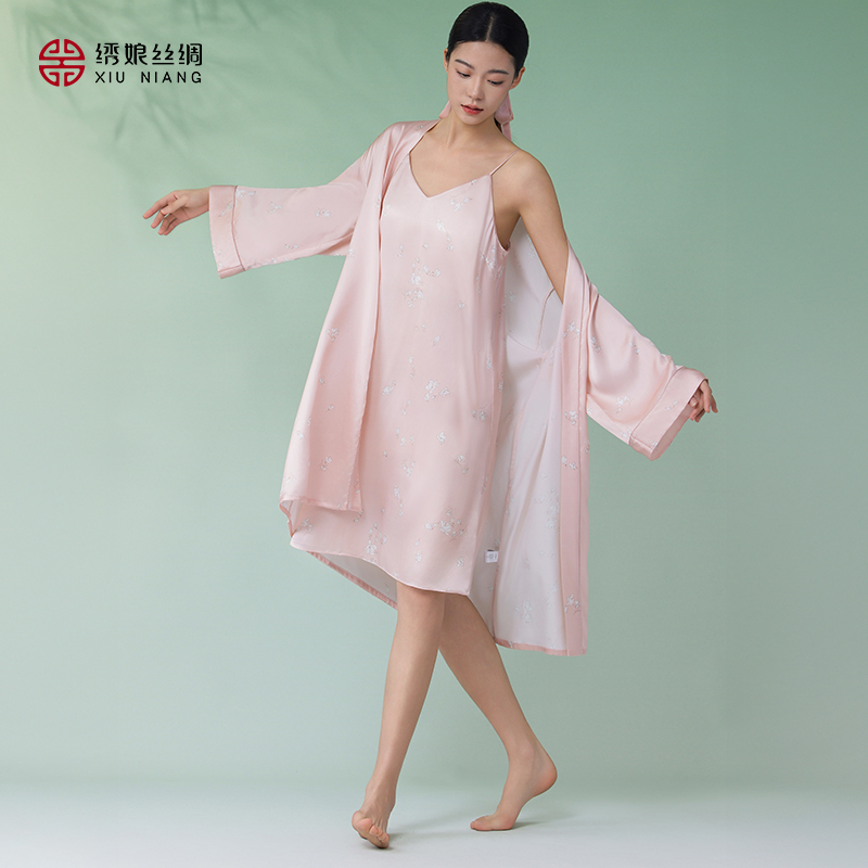 2025新款 性感冰丝睡袍纯欲风高级感蕾丝吊带睡衣 睡裙女春秋夏薄款