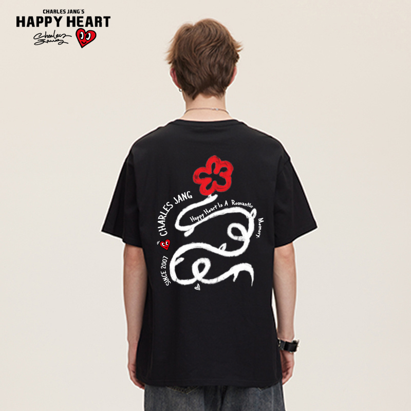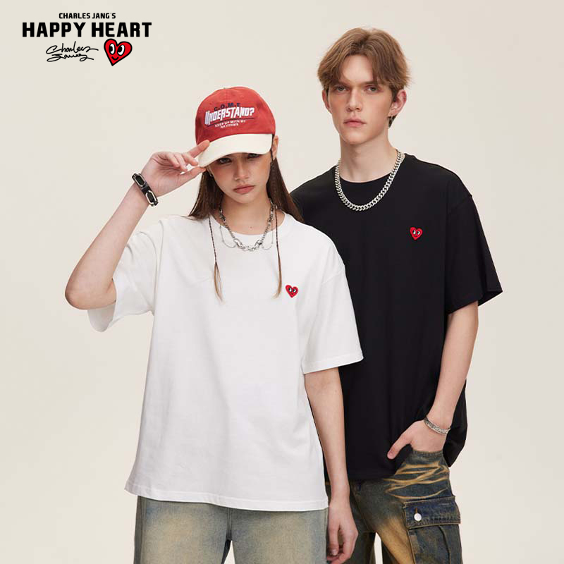2025新款 查尔斯桃心 字母印花夏季 t恤男美式 落肩圆领纯棉体恤 短袖