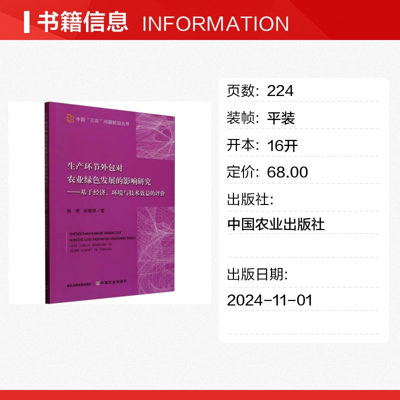 评价 畅倩 赵敏娟 生产环节外包对农业绿色发展 经济理论经管 环境与技术效益 著 励志 影响研究——基于经济