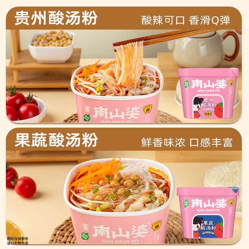 方便速食免煮 南山婆贵州酸汤粉非油炸酸辣粉桶装 特卖6桶