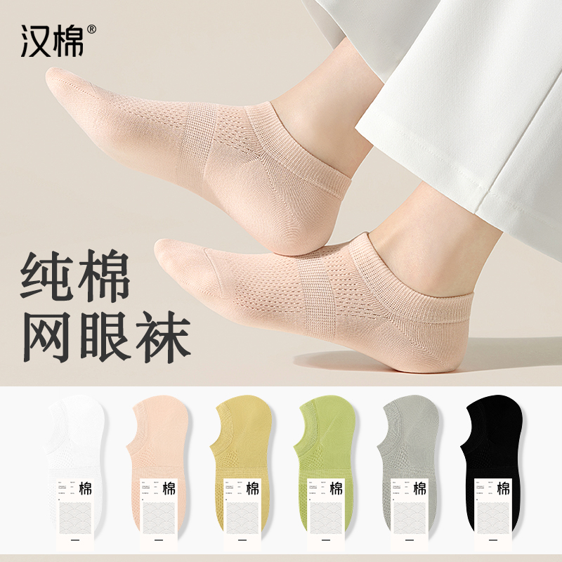汉棉袜子女士船袜秋冬低帮浅口隐形袜白色7A抗菌防臭网眼短袜女