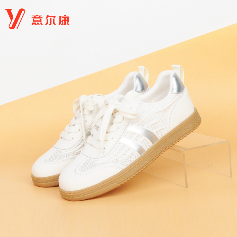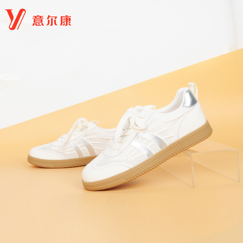 透气软底板鞋 意尔康女鞋 轻便舒适小白鞋 网面休闲德训鞋 2025夏新款