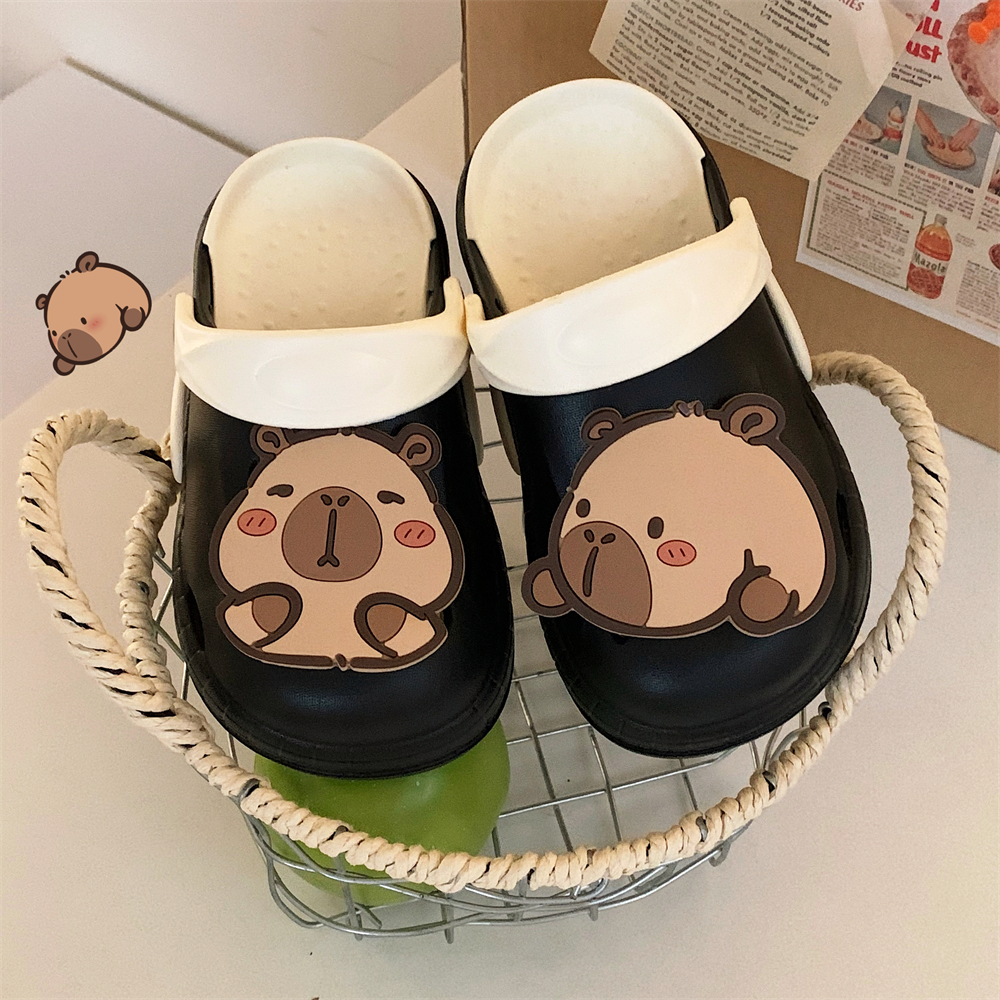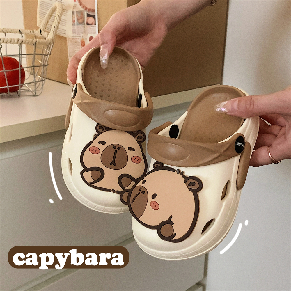 外穿凉鞋 男童女童夏季 可爱ins呆萌卡皮巴拉亲子拼色洞洞鞋 细细条