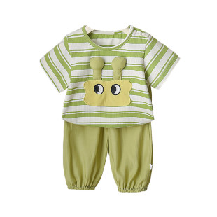可外穿自带胸垫家居服套装 猫人女款 长裤 冰丝凉感宽松短袖 睡衣夏季