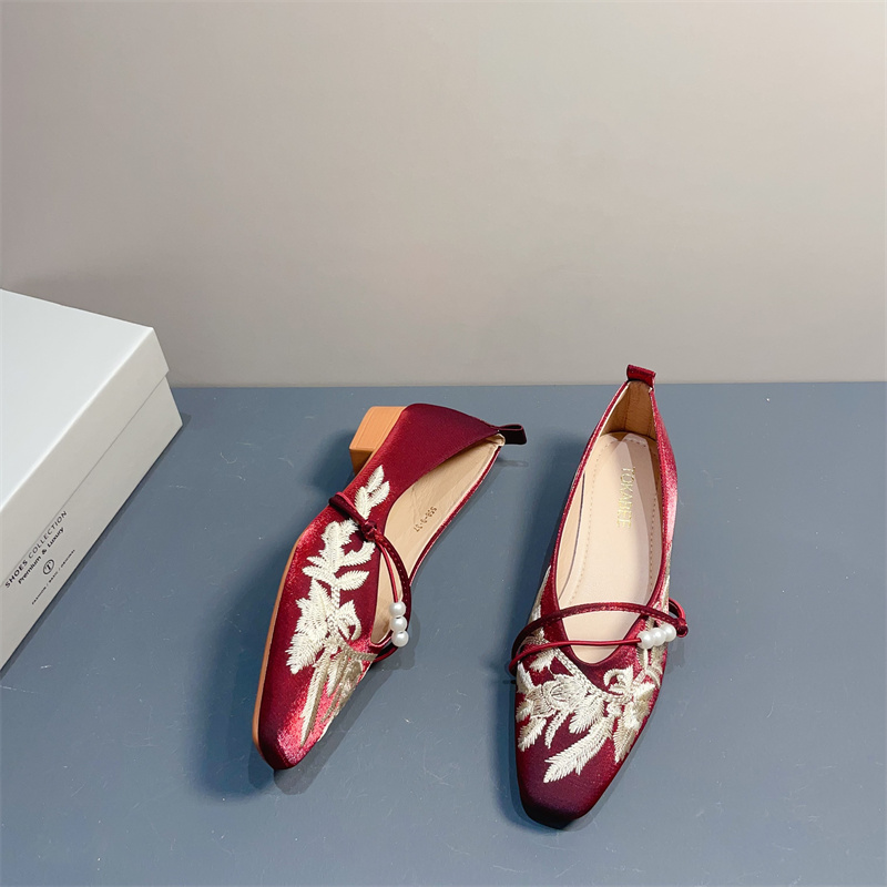 女细跟2025新款 单鞋 秋新娘鞋 秀禾婚鞋 浅口敬酒鞋 达芙妮红色高跟鞋