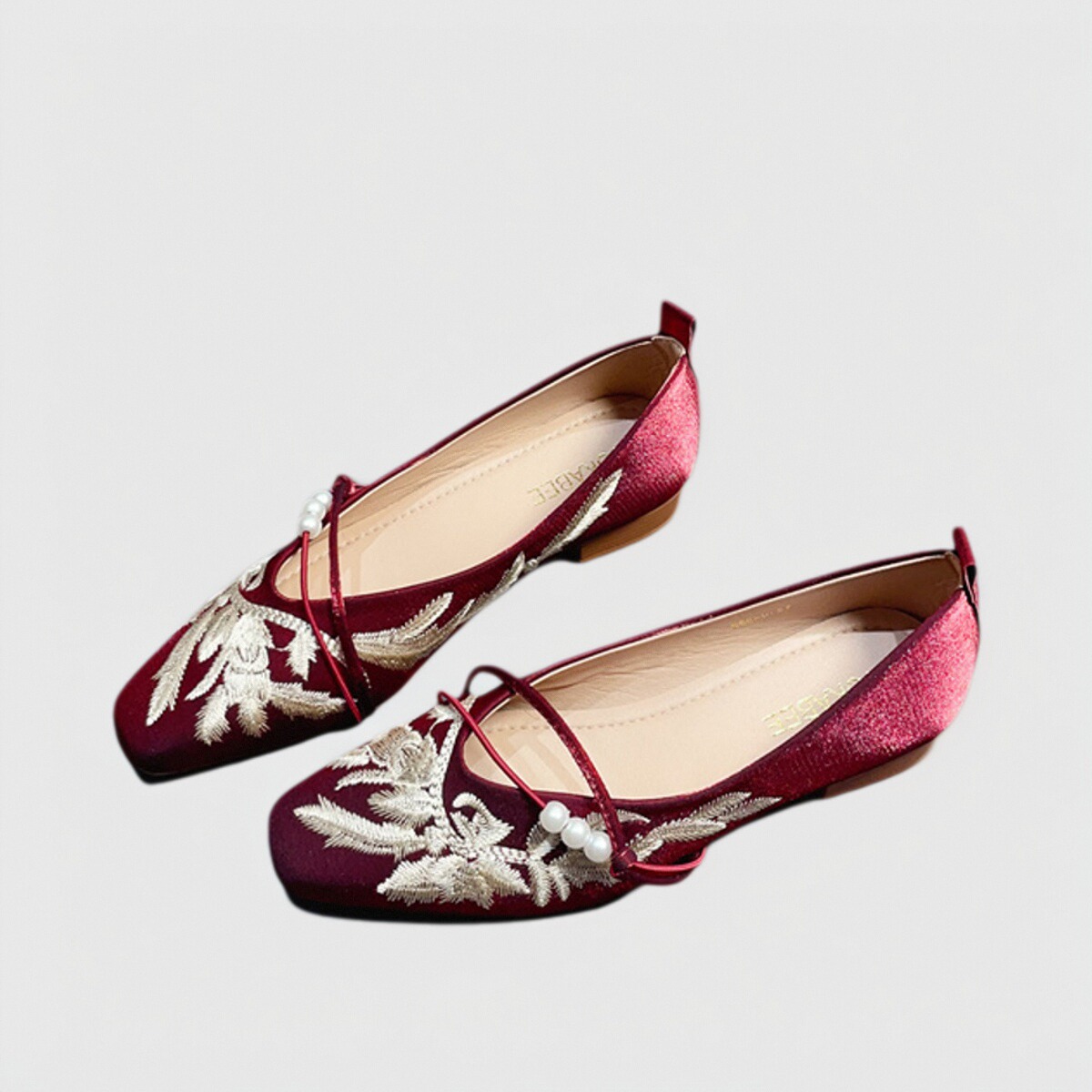 秋季 红色平底鞋 芭蕾法式 浅口婚鞋 达芙妮羊皮单鞋 豆豆鞋 女2025新款