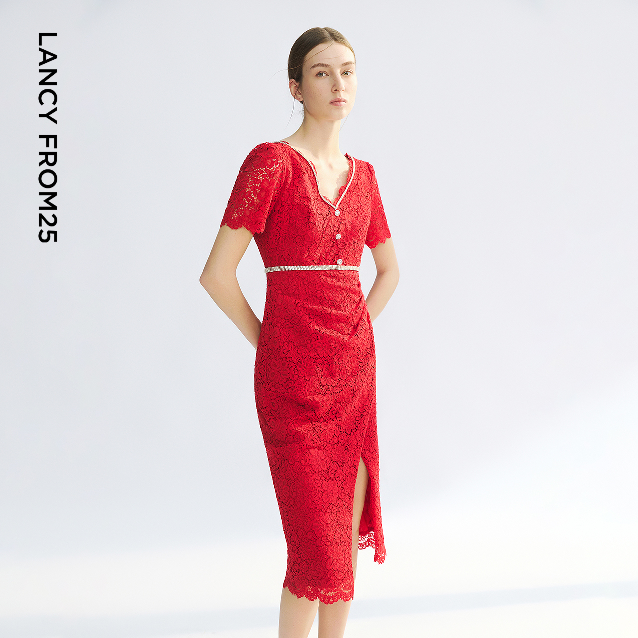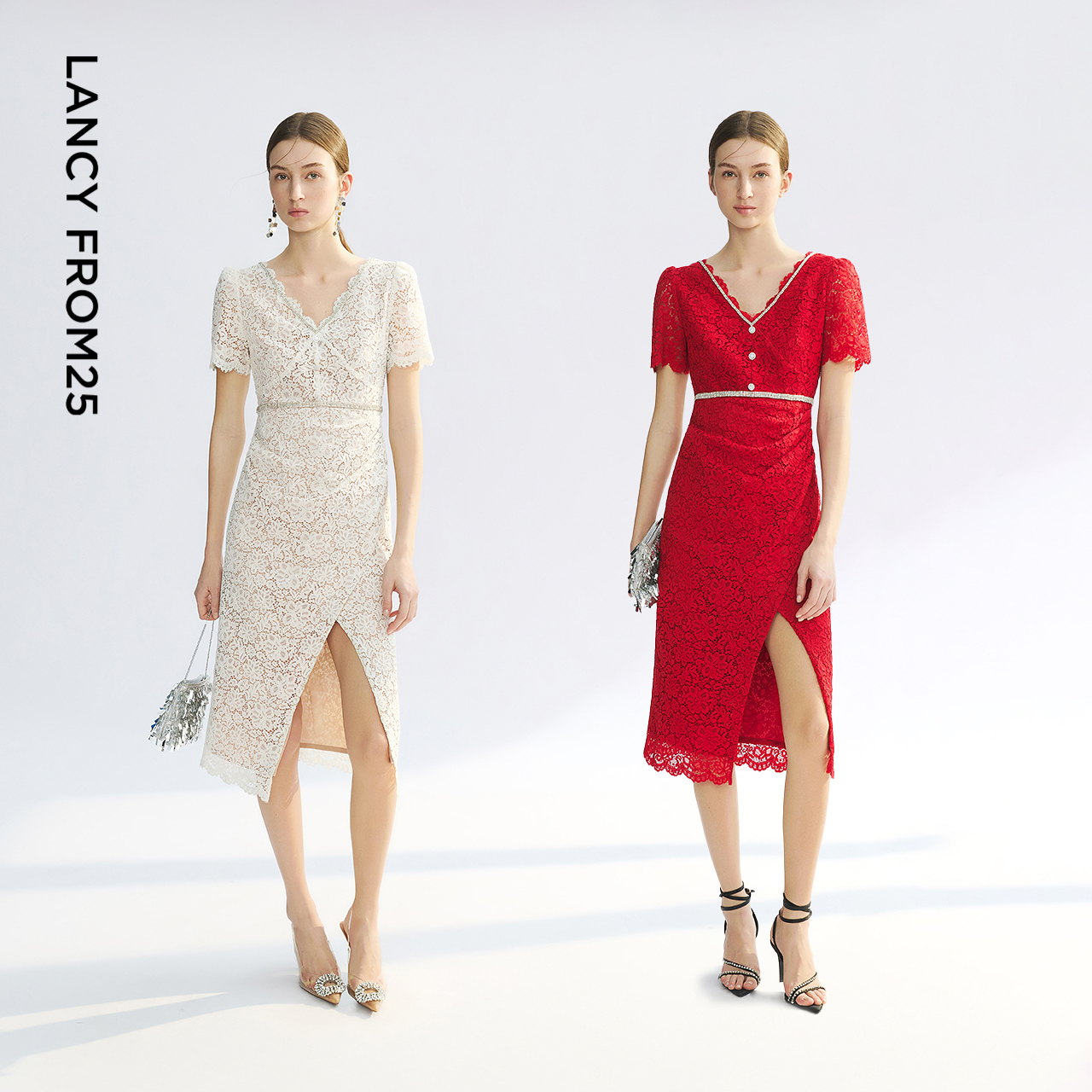 MOJO莫佐浪漫方领假两件通勤连衣裙2025 舒心