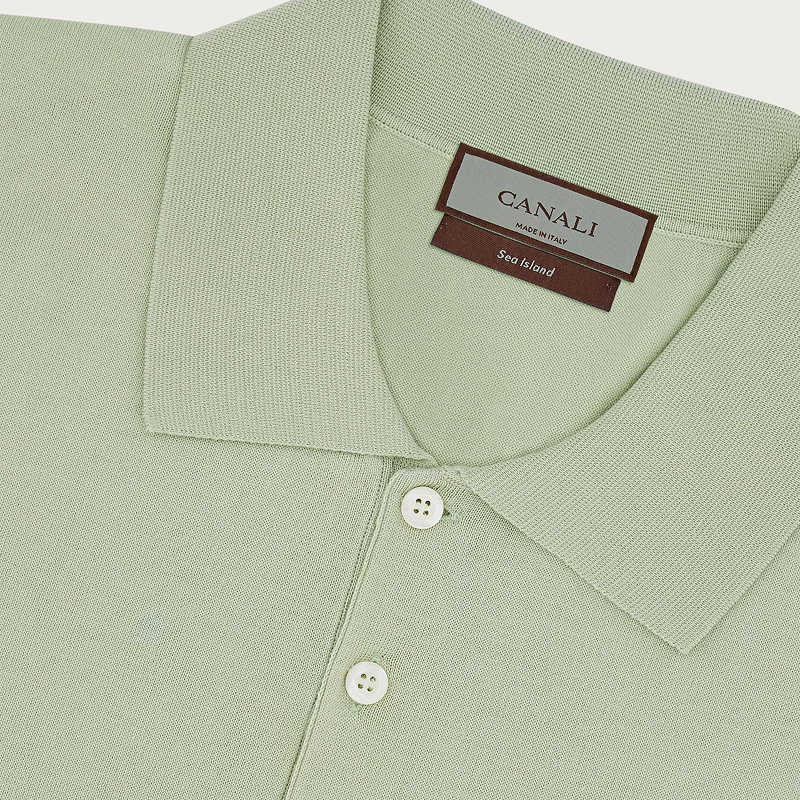 POLO衫 CANALI康纳利绿色纯海岛棉罗纹上衣男士 短袖