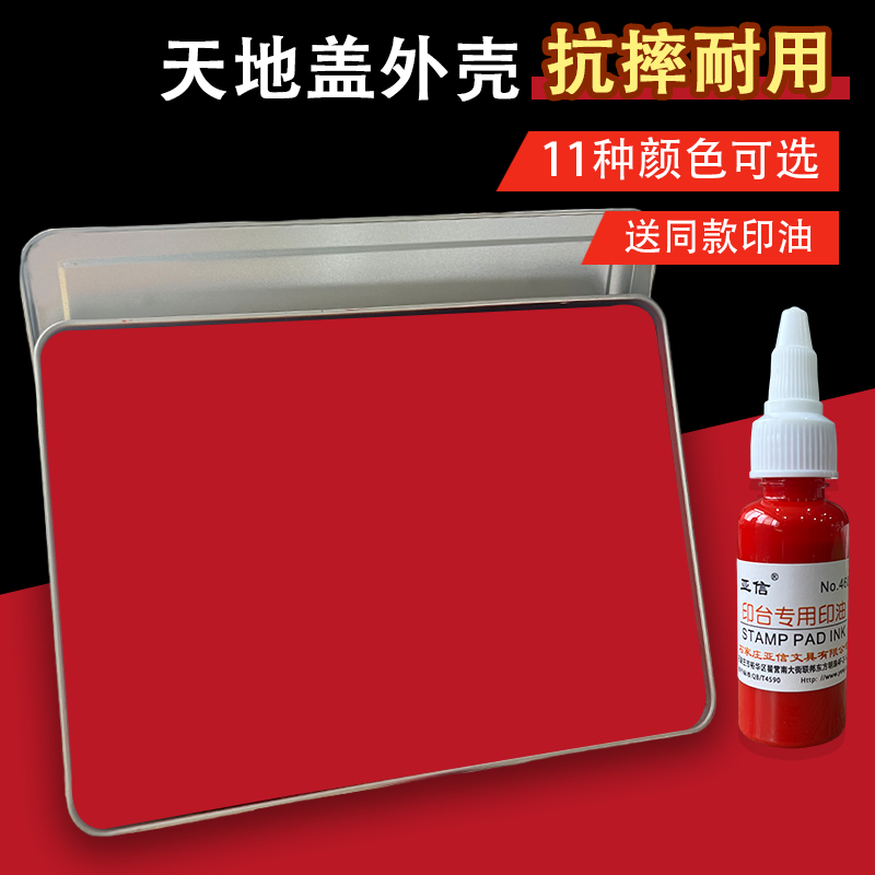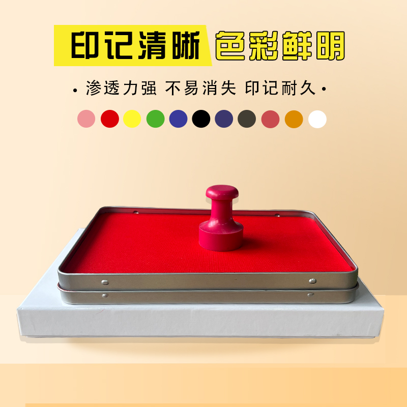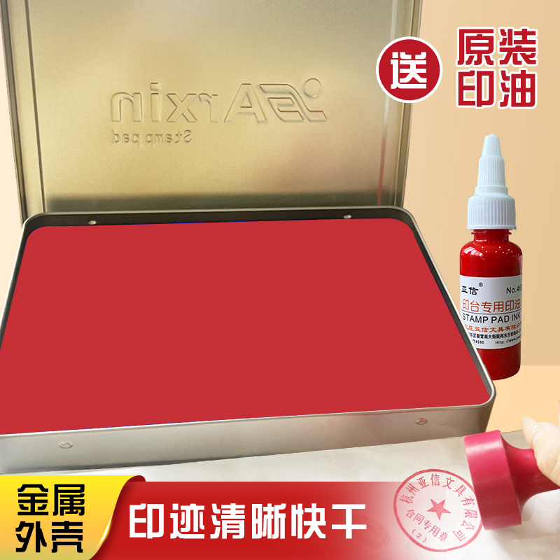 亚信大印台红色印泥多彩色金属印台大号速干印台快干印油印章秒干按宝宝手印手掌脚印 印泥盒办公用品盖章台