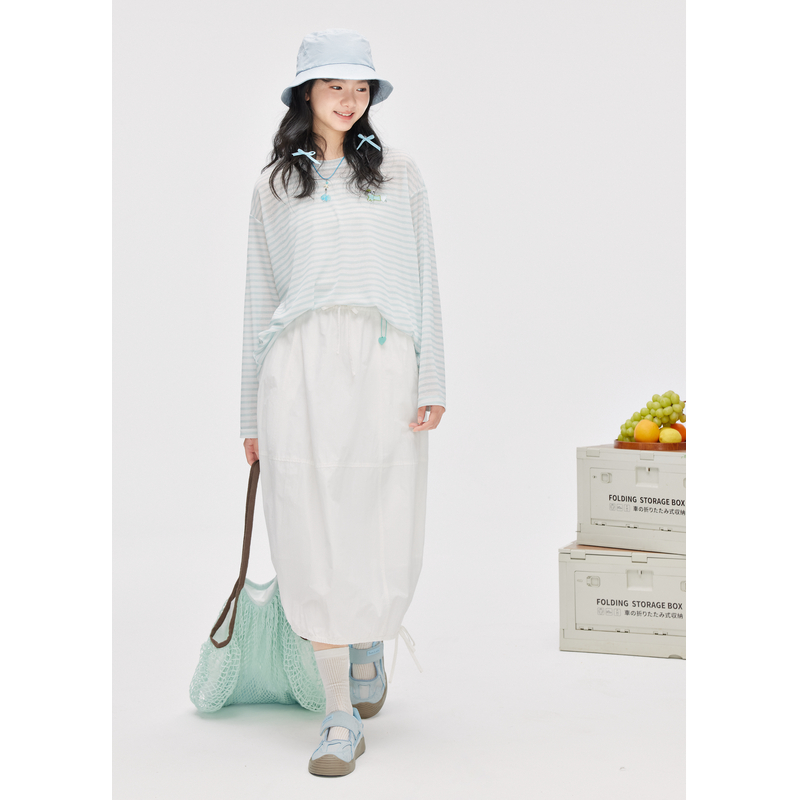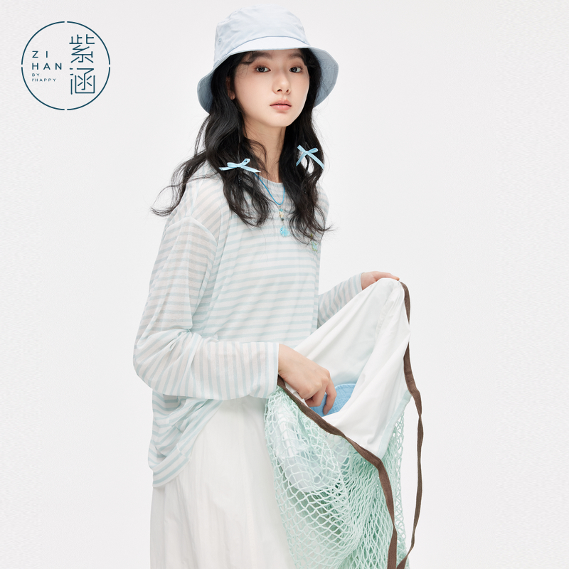 薄款 新款 透气宽松叠穿上衣航海系 T恤女2025年夏季 紫涵横条纹长袖