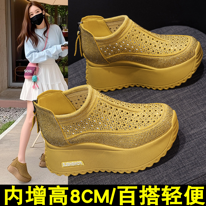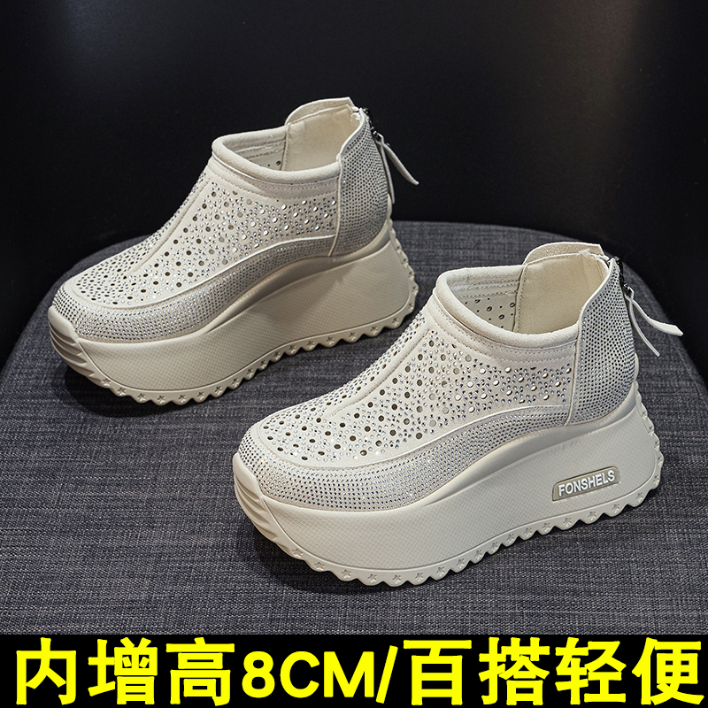轻便小个子带钻透气内增高女鞋 新爆款 女2025夏季 松糕厚底镂空凉鞋