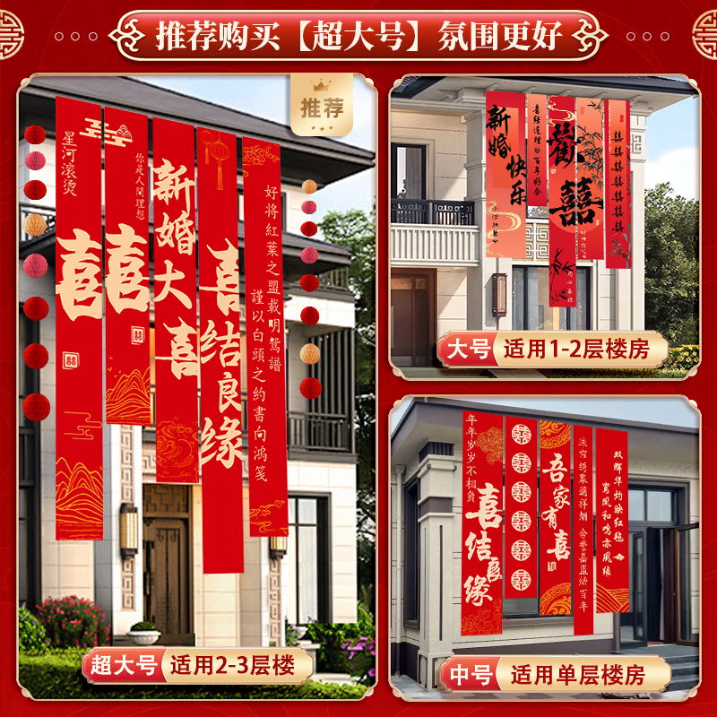 农村结婚院子挂布装 饰庭院婚礼布置婚房室外门口条幅喜字横幅布幔