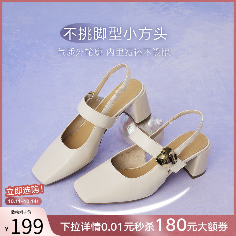 方头后空女玛丽珍凉鞋 粗跟高跟鞋 F5201BH5 商场新款 百思图2025夏季