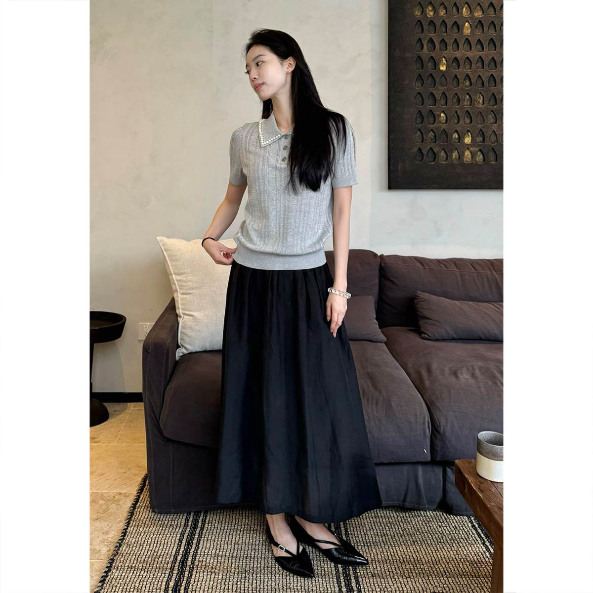 设计师款 泡泡纱松紧腰黑色a字裙半身裙18465220 佐丹奴裙子女新款
