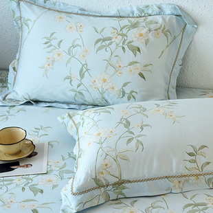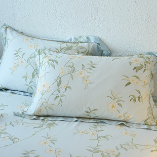 水星家纺全棉对枕套100%纯棉花卉印花枕芯套一对装 家用宿舍床品