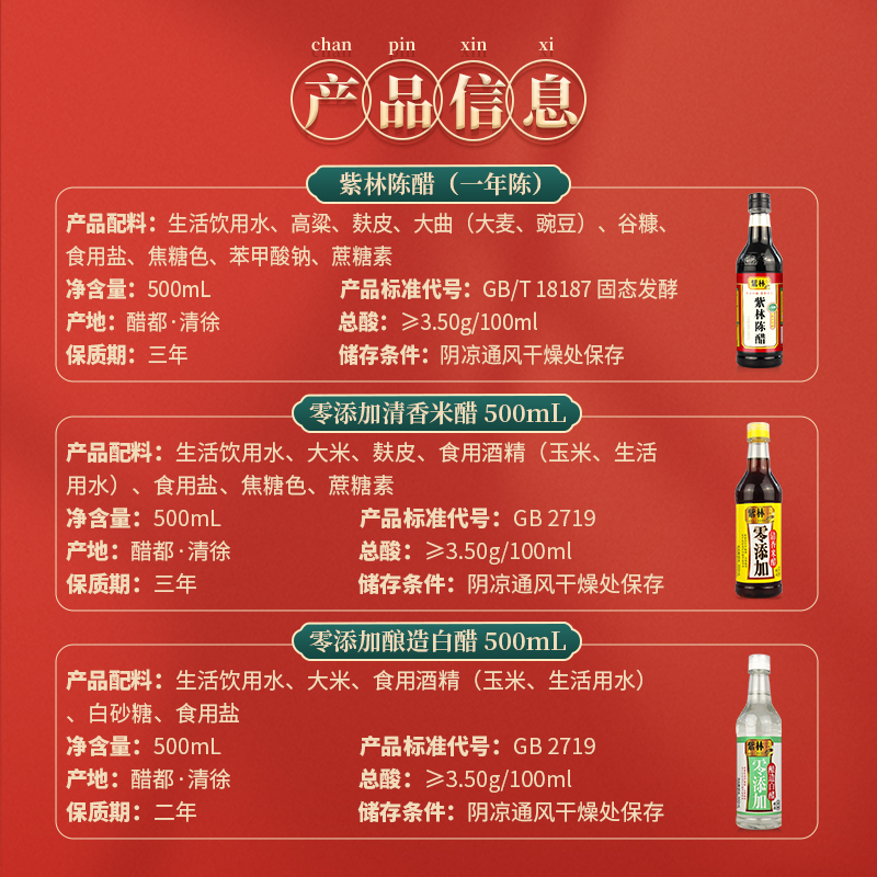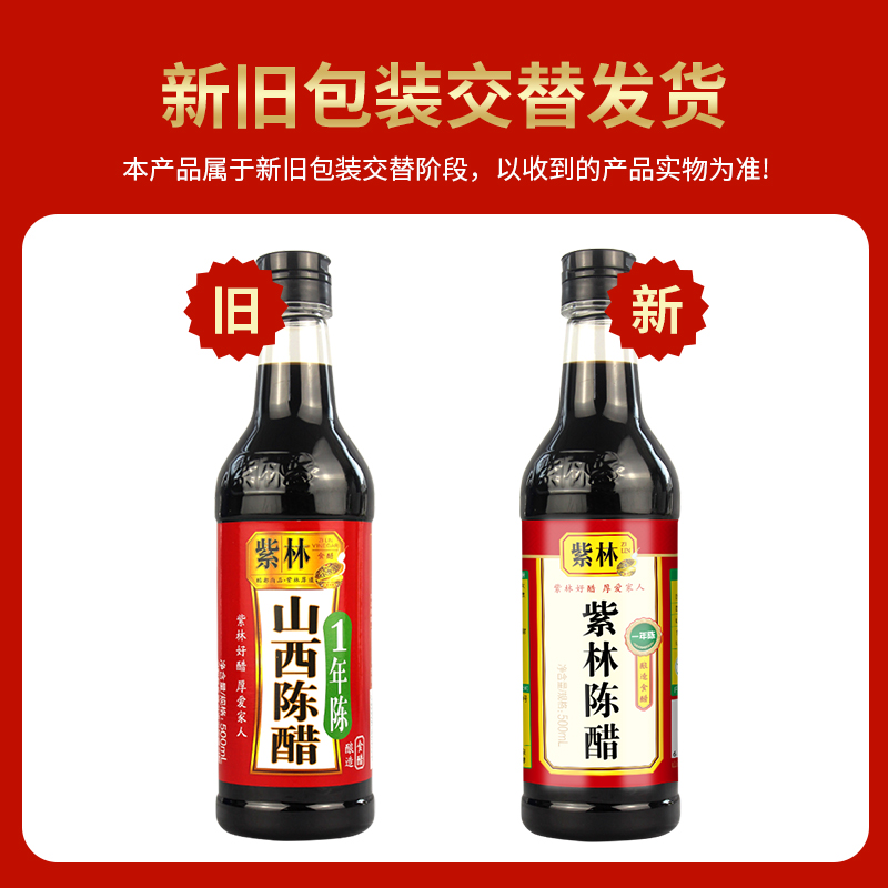 白醋500ml组合塑料瓶装 紫林山西陈醋1年陈500ml 清香米醋500ml