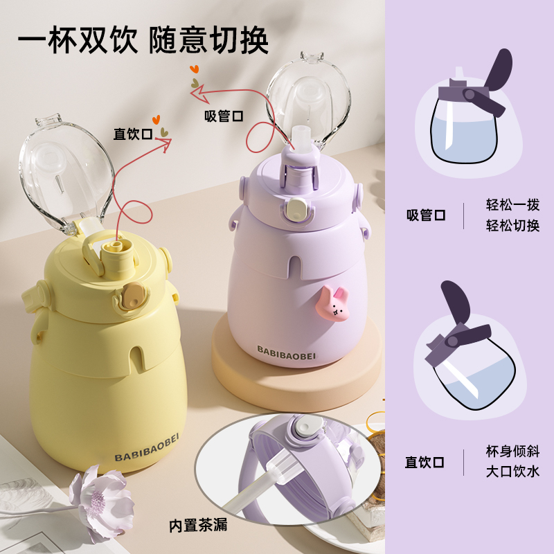芭芘宝贝保温杯女士高颜值儿童吸管水杯大容量网红大肚杯学生水壶