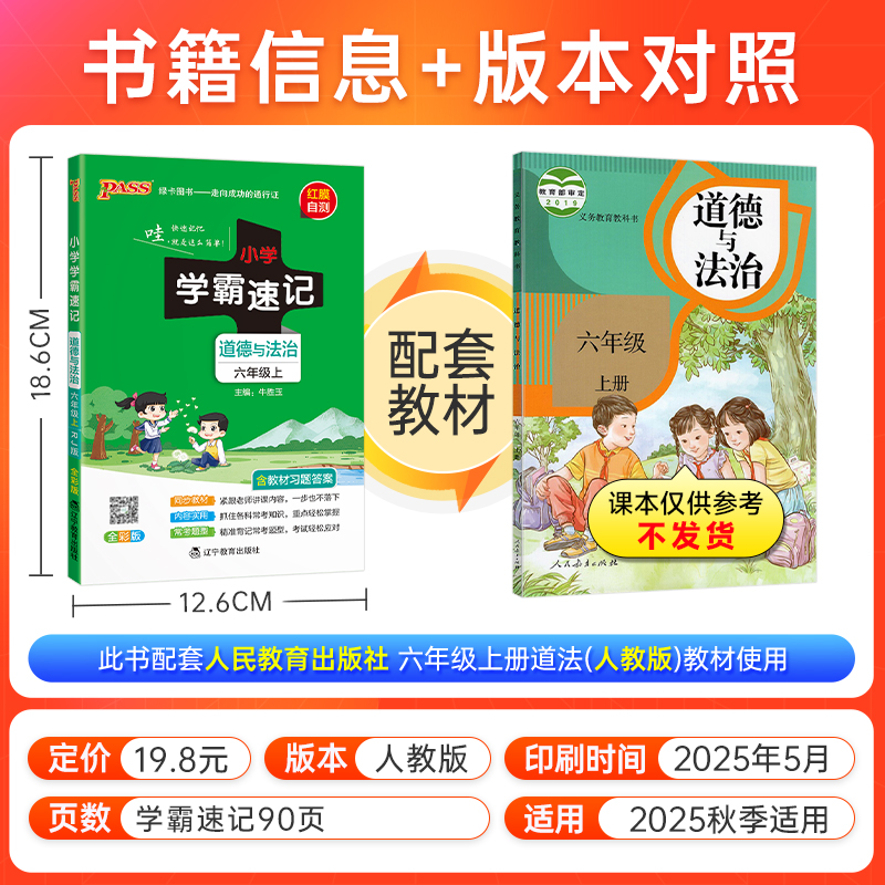 2025新版 知识点汇总速查速记提要同步解读复习知识点考试前背诵便携工具书PASS绿卡图书 小学学霸速记六年级上册道德与法治人教版